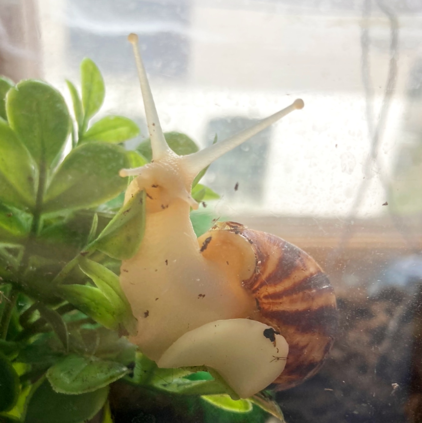 Achatina immaculata is a very nice, curious and tough shell with a lot of foresight, which likes to investigate its surroundings. They happily appreciate a shower every now and then, and are food wrecks of great proportions.