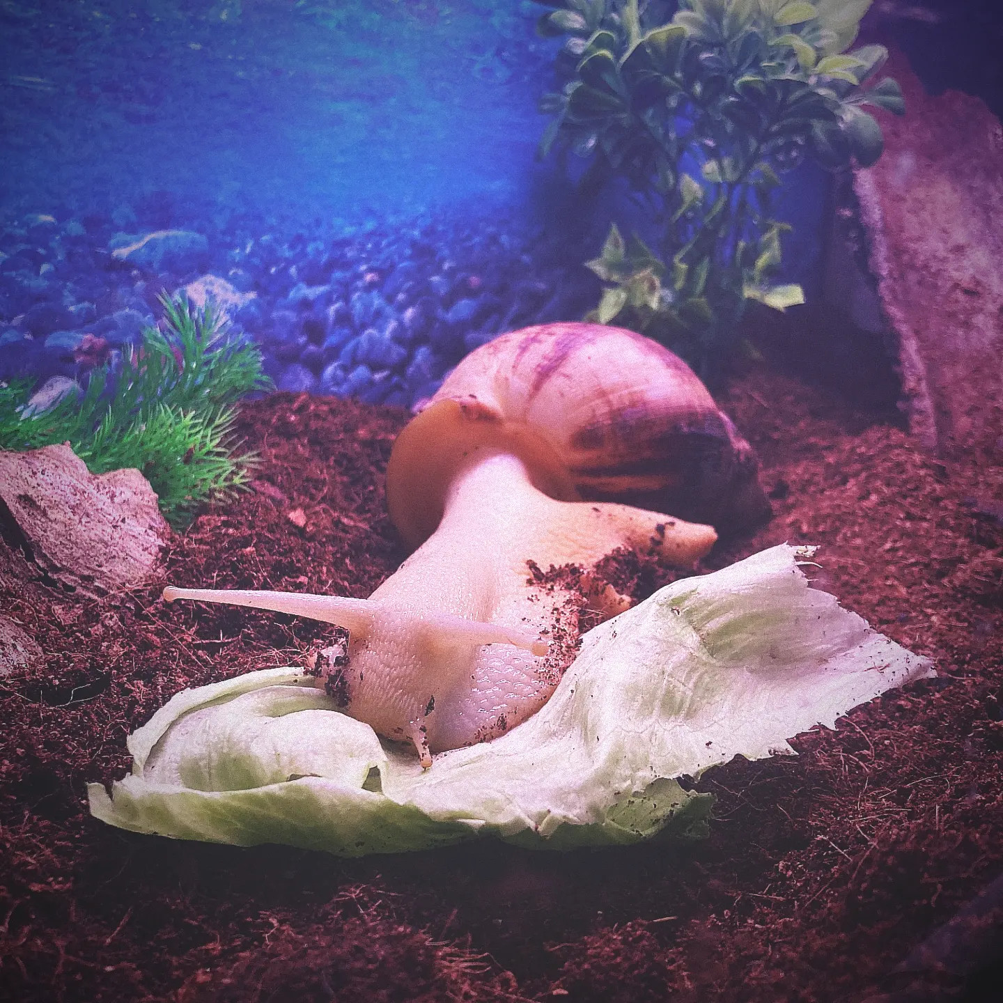 Lissachatina reticulata is one of the largest species of African giant snails that we keep as pets. They can be experienced as a bit more demanding than other species, but their personalities are strong, they are quite durable and, given the time required, they can be a very fun pet.